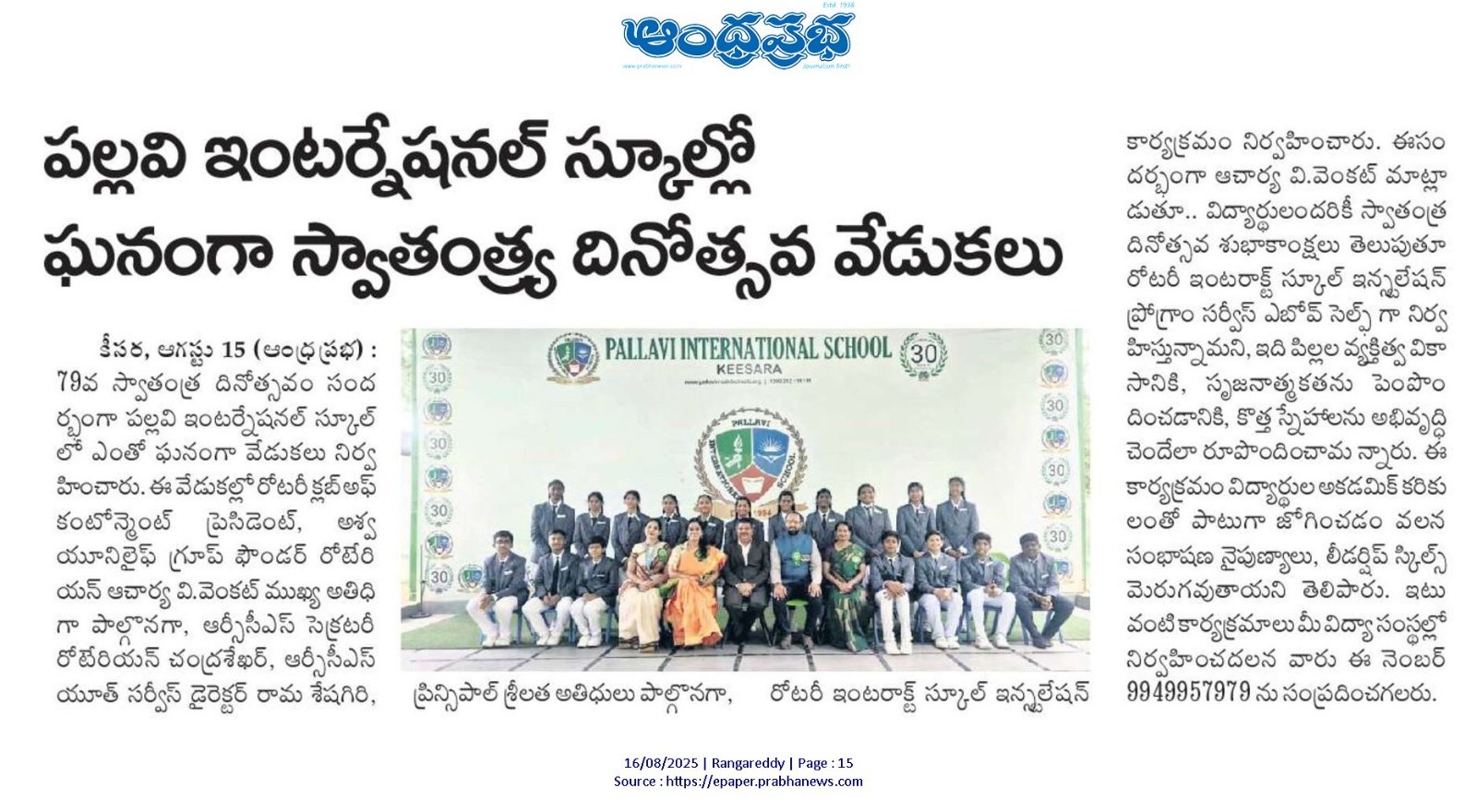 What an inspiring and vibrant day it was! The Independence Day celebrations at Pallavi International School, Keesara, combined with the Interact Club Installation Ceremony for 2025-26, reflected a perfect blend of national pride and youth leadership.