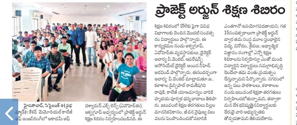 🗓️ 4th Sep 2023, Project Arjun, program at Keshav memorial Engineering college, hyderabad.